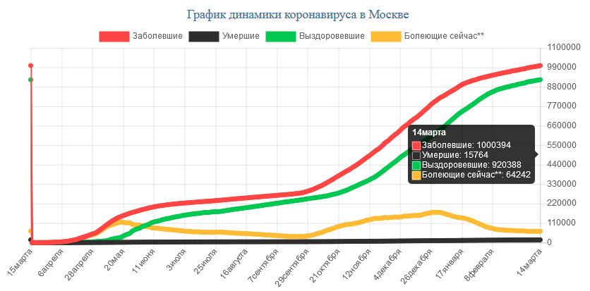 На сегодня, 15.03.2021, в Москве всего зарегистрировано: