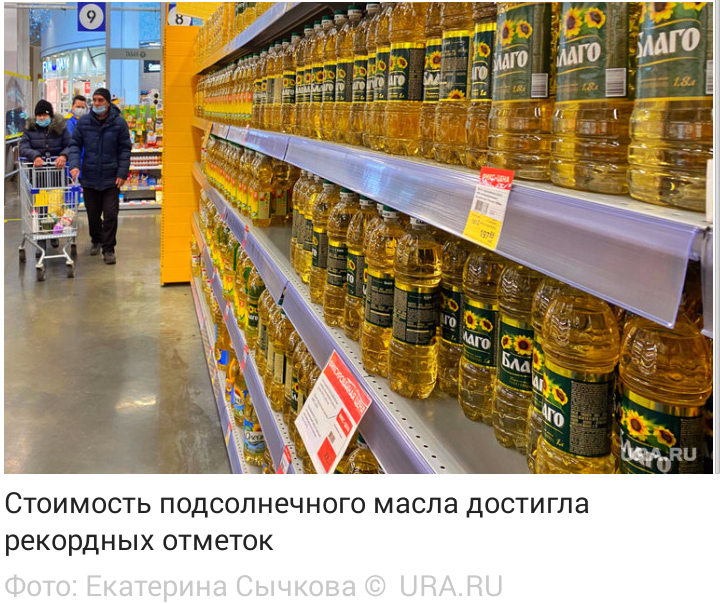 «Цены на подсолнечное масло сейчас находятся на абсолютном рекорде за всю историю человечества, за последние 200 лет», — заявил он на онлайн-конференции.