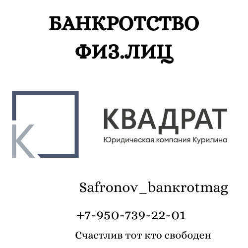Вы можете обратиться ко мне по любому юридическому вопросу. Я действительно решаю проблемы. Всегда на связи по тел. 8-950-739-22-01, viber, whatsApp или на e-mail: jurist177@yandex.ru, либо задать свои вопросы в личные сообщения в директе инстаграм https://www.instagram****.com/safronov_bankrotmag/