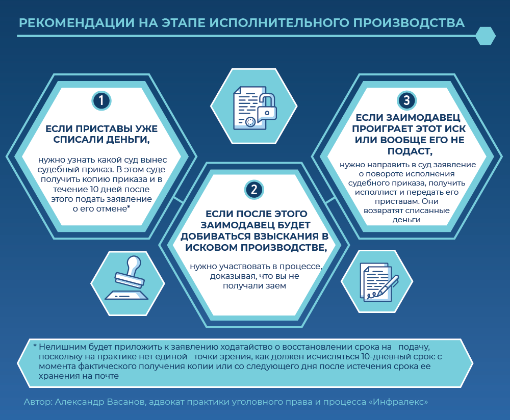 Независимо от того, когда человек обнаружил «чужой» долг, ему стоит подать заявление о возбуждении уголовного дела, считает Васанов. Поскольку есть вероятность привлечь злоумышленников к ответственности. А еще на подачу такого заявления не помешает сослаться при оспаривании договора.