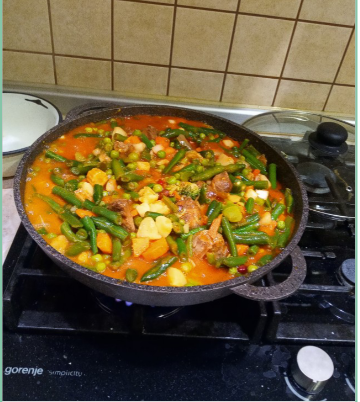 В общем это всë у меня вышло на 355 руб. Получился небольшой казан мясного рагу. Такой казан трое человек съедает за пять дней, один раз в день. Итого в казане 15 порций.