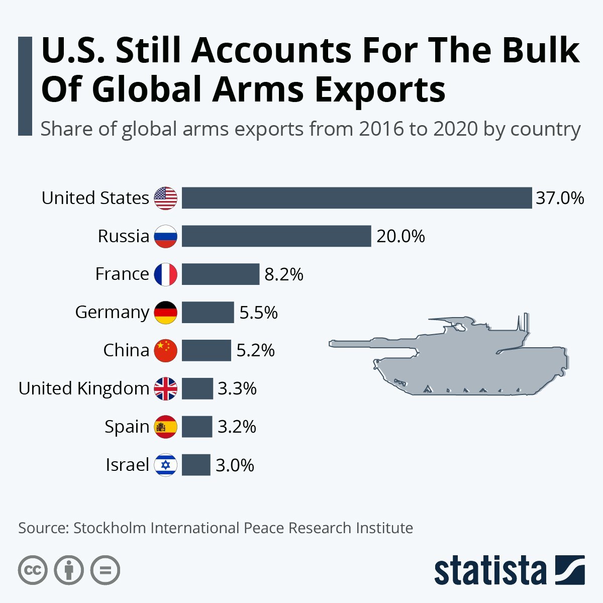 На сайте Statista вышли новые данные по продаже вооружения в период с 2016 по 2020 года. И вот какие показатели: