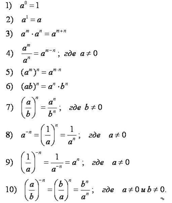 Выучить формулы свойств степеней