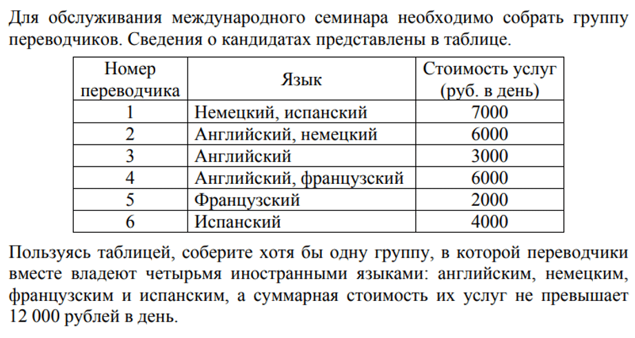 Например, мы нашли вариант позвать первого, третьего и пятого переводчиков. Получим весь набор языков как раз за 12 тысяч. Это решение далеко не единственное.