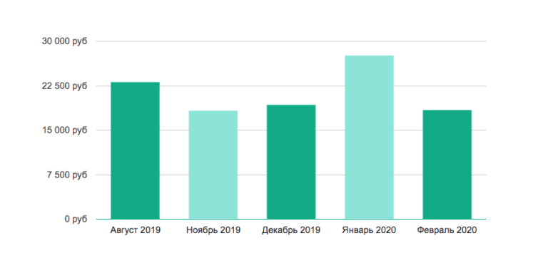 Интересно посмотреть на то, как вела себя средняя по России зарплата в конце 2019-го – начале 2020-го.
