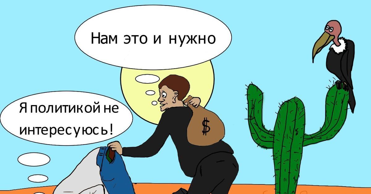 Если человек не интересуется политикой, то политика все-равно заинтересуется им. Что мы, собственно, и видим. Рост цен, падение экономики, санкции, низкий рейтинг на международном уровне из-за лидера.