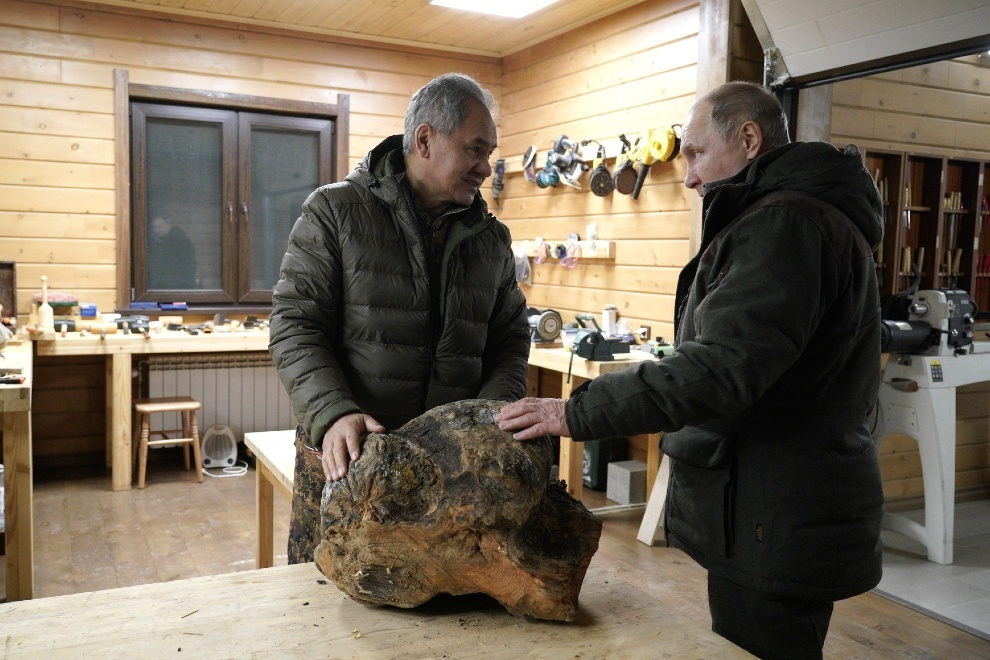 Во время поездки Шойгу показал Путину свою мастерскую, где занимается поделками из дерева. На столах и верстаках лежали деревянные заготовки, спилы, бруски и столярные инструменты.