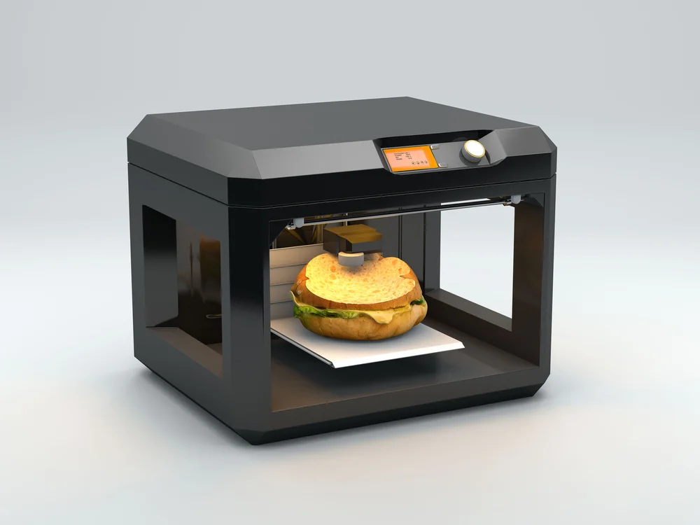 Еще один тренд ближайшего десятилетия - еда из 3D-принтера. Согласно дорожной карте НТИ, к 2028 году россияне смогут самостоятельно производить себе еду на таком устройстве. Разработки в этой сфере уже ведутся, одна из них предполагает, что на домашнем устройстве можно будет напечатать мясо из растительного белка или из предварительно культивированных клеток мяса. В промышленных масштабах о планах выпускать напечатанные на 3D-принтере продукты уже заявляла компания KFC, она намерена производить таким образом куриные наггетсы.