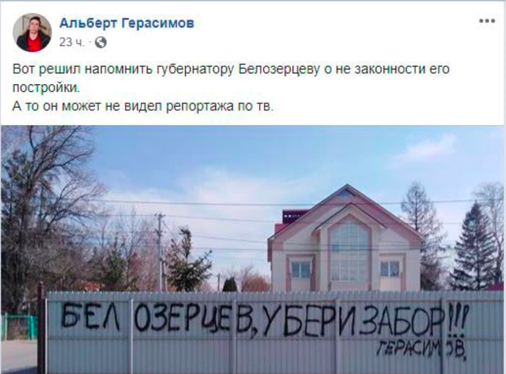 «Белозерцев, убери забор. Это общественная дорога» - Герасимов.