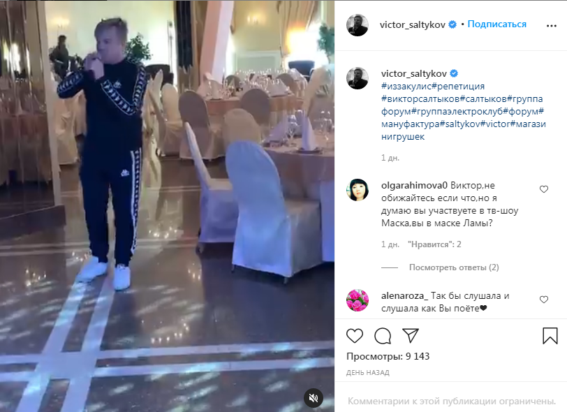 Пользователи Instagram**** были удивлены необычным образом Виктора Салтыкова, в котором он появился на одном из видео. Певец в стильном черно-белом спортивном костюме выступает в шикарных интерьерах. Судя по кадрам – это дорогой ресторан или банкетный зал.