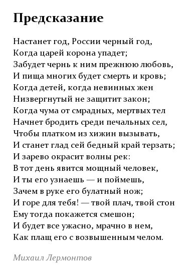 1) https://rustih.ru/mixail-lermontov-predskazanie/;