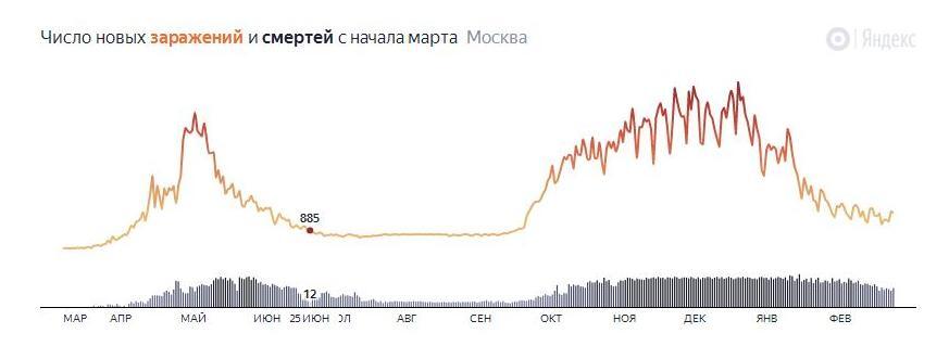 График 3. На 25 июня 2020 г., число заражений и смертей в Москве