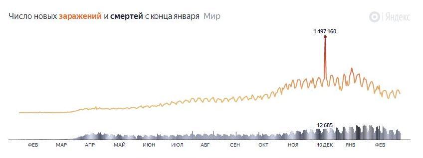 График 1. Число заражений и смертей в Мире