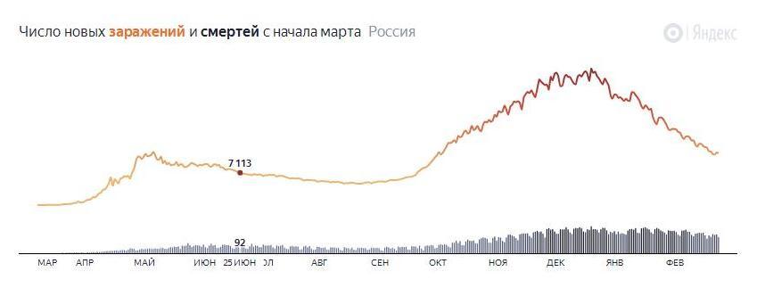 График 5. На 25 сентября 2020 г., число заражений и смертей в России