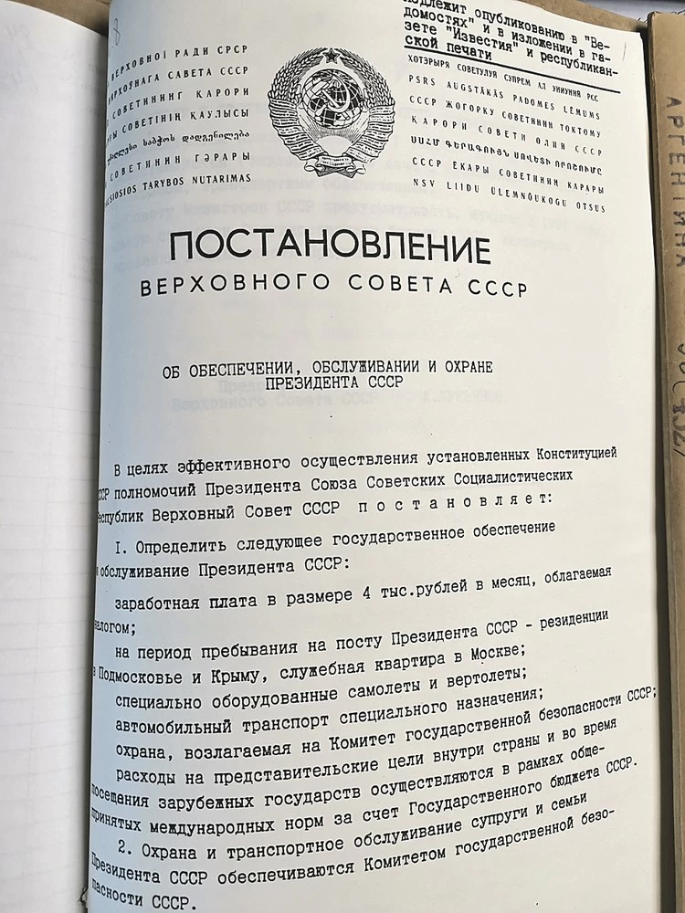 Интересное уточнение появилось в пункте № 4. В госбюджете СССР отдельной строкой проходило содержание не только главы государства, но и Президентского совета, причем «на основе предложений самого президента».