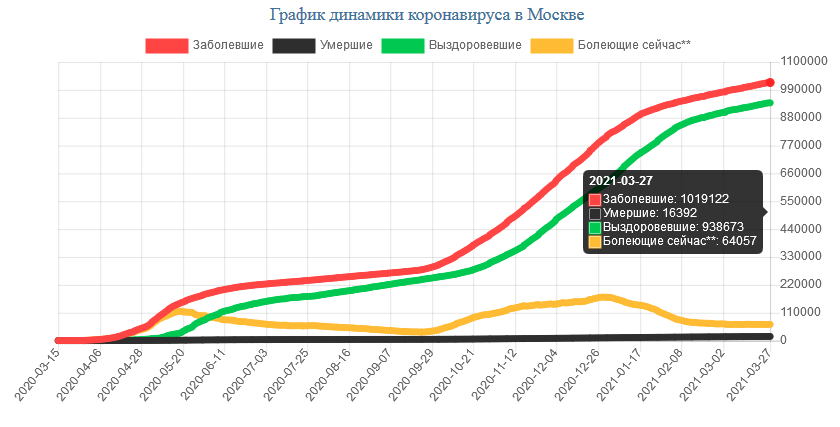 На сегодня, 27.03.2021, в Москве всего зарегистрировано:
