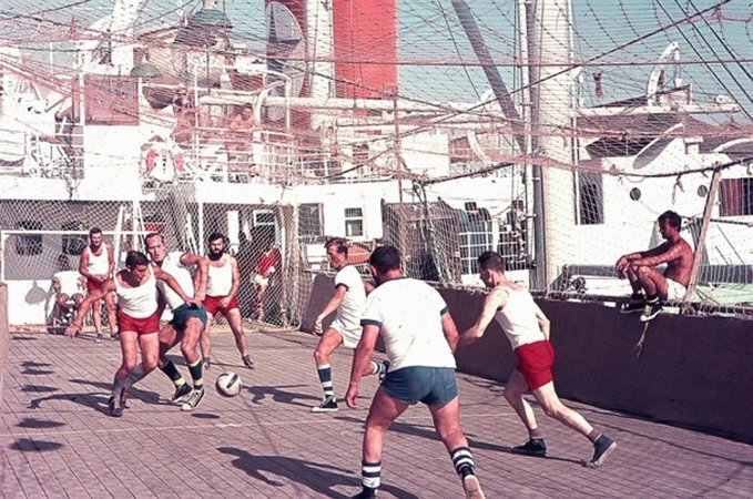 Моряки развлекались как могли: устраивали регаты на спасательных шлюпках, рубились в футбол на палубе самого большого корабля, а на других организовали импровизированный кинотеатр, бассейн и что-то вроде собора, где проводились службы для представителей разных конфессий.
