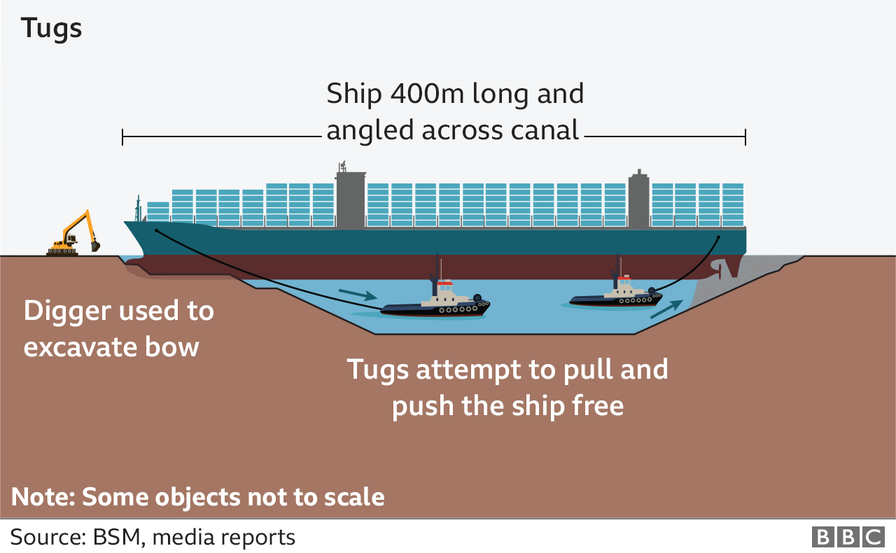 Ever Given водоизмещением 200 000 тонн село на мель во вторник утром из-за сильного ветра и песчаной бури, что ухудшило видимость. Для снятия с мели судна были привлечены специализированные аварийно-спасательные роты.