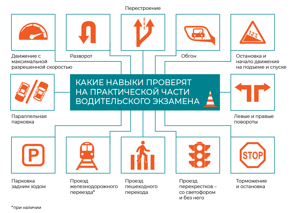 Порядок выполнения различных элементов будет произвольным. Всего их чуть меньше двадцати, но некоторые – такие как проезд железнодорожного переезда – будут опциональными. Если там, где сдается экзамен, не ходят поезда, инспектор просто не будет проверять этот навык.