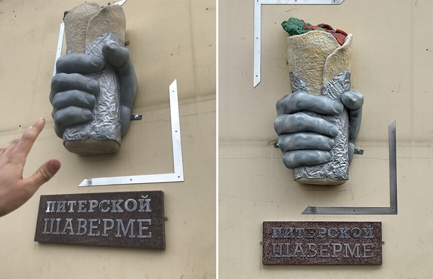 В Санкт-Петербурге на стене одного из домов появился памятник питерской шаверме. Он выполнен в виде руки, сжимающей аппетитный фаст-фуд, завернутый в фольгу. Александру Розенбауму он показался копией факела в Пантеоне воинской славы на Мамаевом кургане в Волгограде.