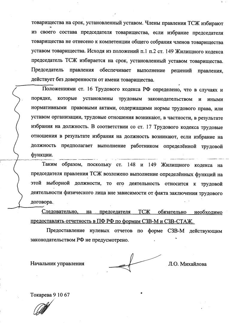 Таким образом, поскольку статьями 148 и 149 Жилищного кодекса на председателя правления ТСЖ возложено выполнение определенных функций на этой выборной должности, то его деятельность можно отнести к трудовой деятельности физического лица вне зависимости от факта заключения трудового договора.