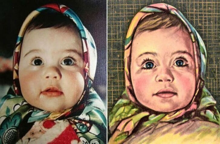 Но предусмотрительные владельцы не стали размещать фотографию в том виде, в каком ее прислал отец ребенка. Они изменили цвет глаз и волос, «сдули» щечки, вытянули лицо. Получилось рисованное изображение девочки, очень схожее с реальным фото.