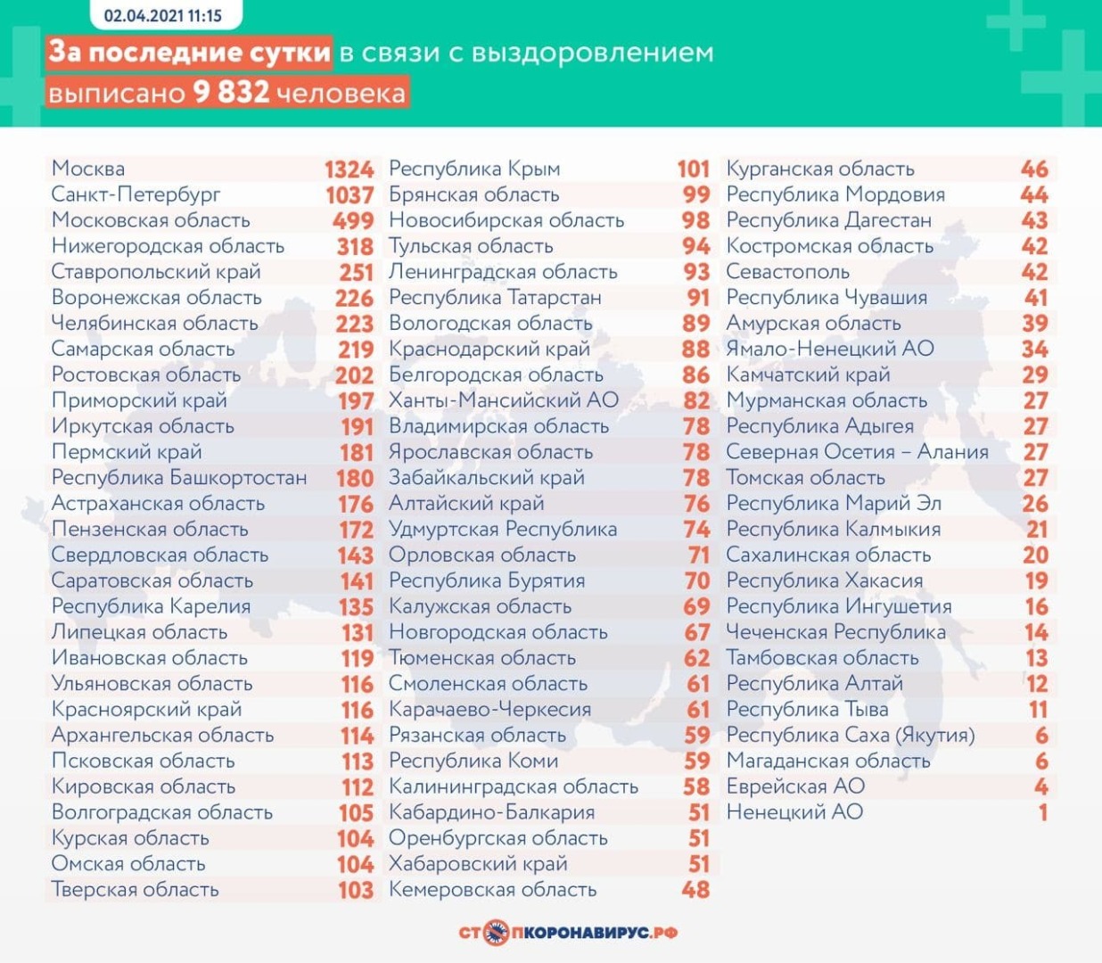 За последние сутки по состоянию на 2 апреля 2021 года в России: