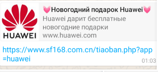 На фото ссылка вшита в текст и замаскирована под официальный сайт Huawei.