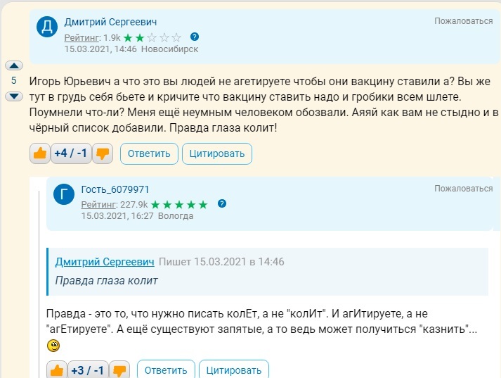 "Как говорится, травитесь на здоровье" я,разве, призываю Вас вакцинироваться?