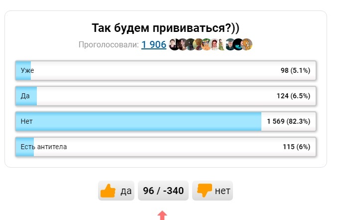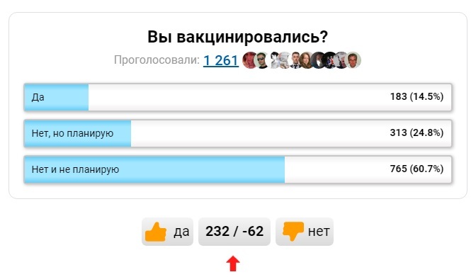 Тут уже 82% прочитавших не хотят вакцинироваться.