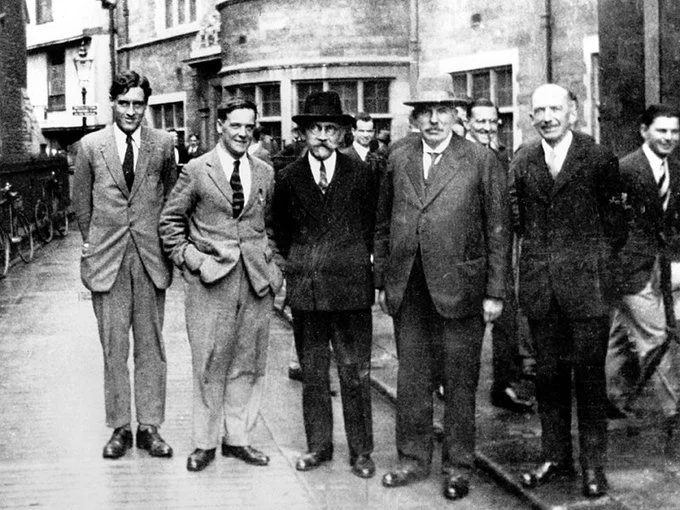 Пётр Капица (второй слева) и Резерфорд в Кембридже
