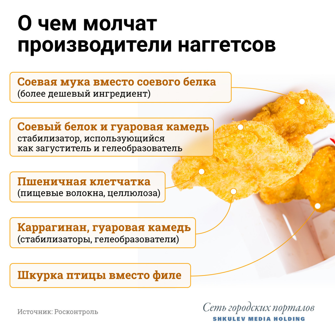 И не забывайте, что наггетсы — продукт глубокой переработки. С сахаром (пусть он и не ощущается, но он есть) и добавленными жирами.