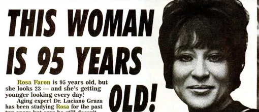 Уникальный случай поразил Лучано, и он решил заняться изучением организма Фарон. Доктор попытался найти причину в генетике, но это не дало результатов. Роза относилась к происходящему философски: молодость и отличное здоровье она считала подарком свыше.