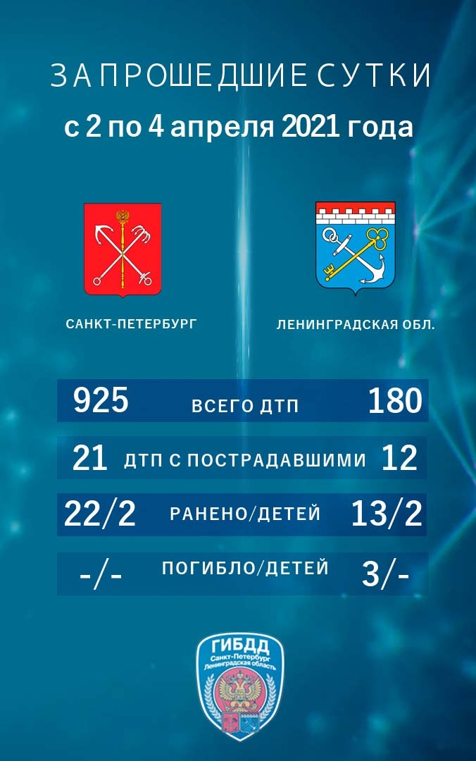 За минувшие трое суток, со 2 по 4 апреля, в Петербурге зафиксировано 925 ДТП, в том числе 21 серьёзное. Пострадали 22 человека, никто не погиб. Об этом 5 апреля сообщает ГИБДД по городу и области в своём паблике «ВКонтакте». Эти показатели — примерно на уровне мартовских.