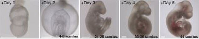 В течение нескольких недель пробирку вращали, что раствор перемещался. Это помогло насытить эмбрионы питательными веществами, поскольку зародыш не имел притока материнской крови к плаценте, пояснил изданию суть опыта биолог Джейкоб Ханн. Помимо этого исследователи контролировали количество и давление кислорода и углекислого газа для развития эмбриона. Меньше чем через неделю у эмбриона развилось бьющееся сердце, голова, желудок и конечности.