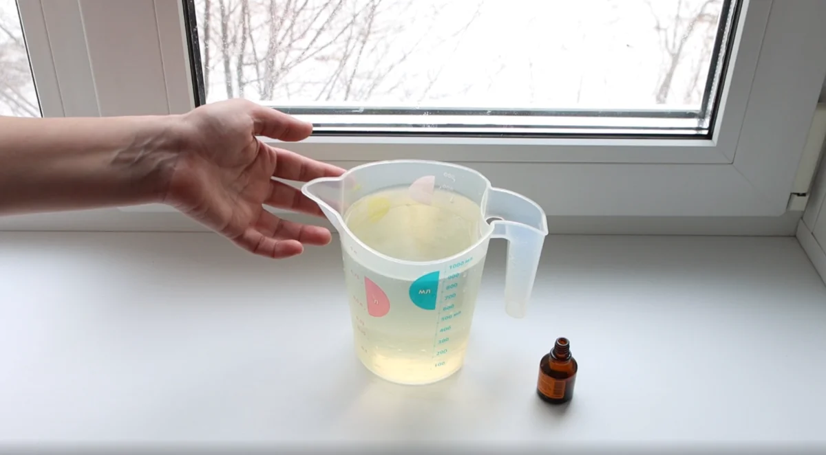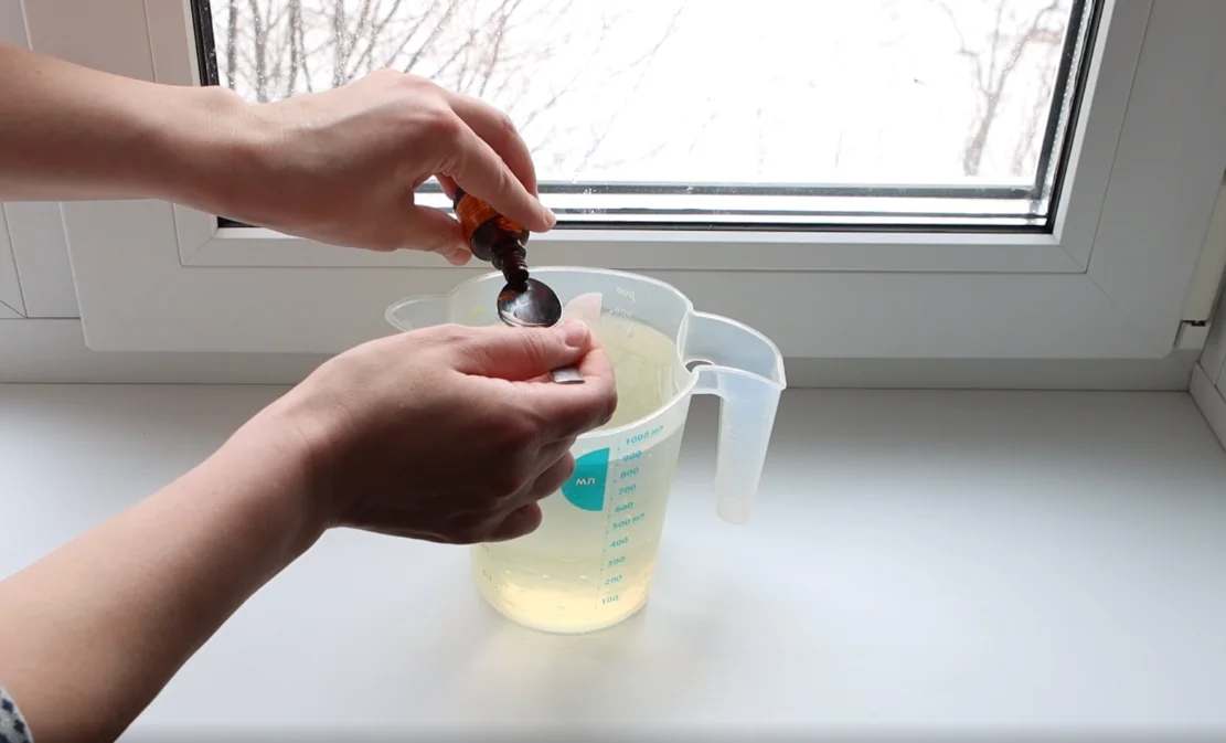 Берем 1 литр теплой воды и добавляем примерно 5 капель йода.