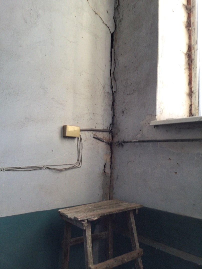 Сквозные трещины в отваливающейся от дома наружной стены увеличились.