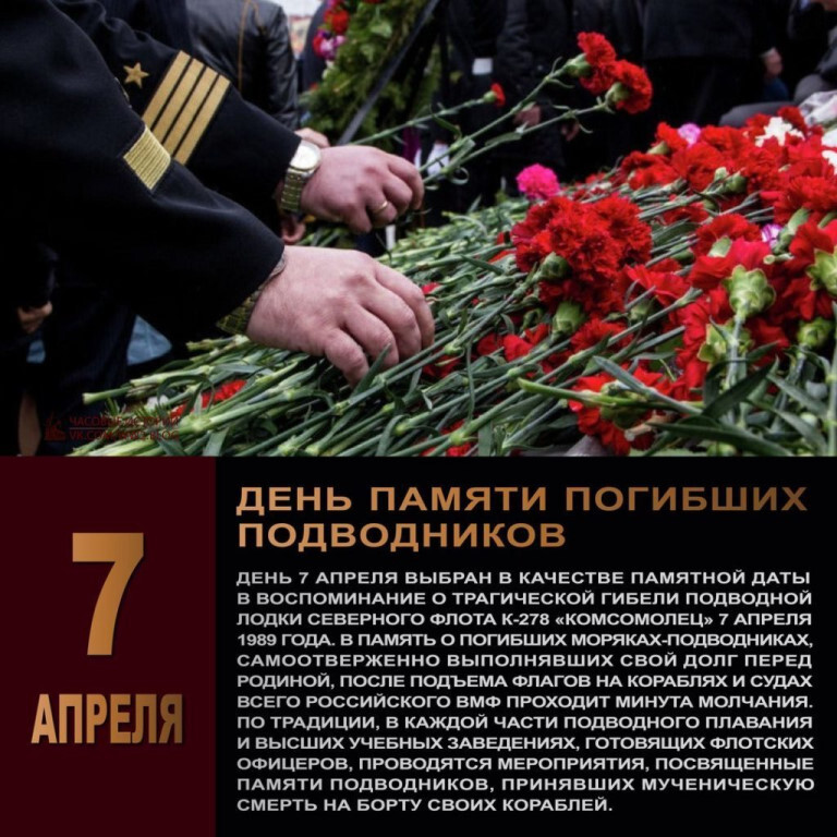 7 апреля День памяти всех подводников, не вернувшихся из походов.