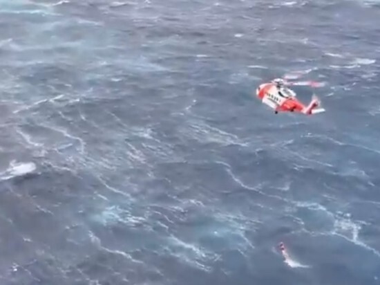 Опубликованы кадры вертолетной спасательной операции во время шторма в Северном море