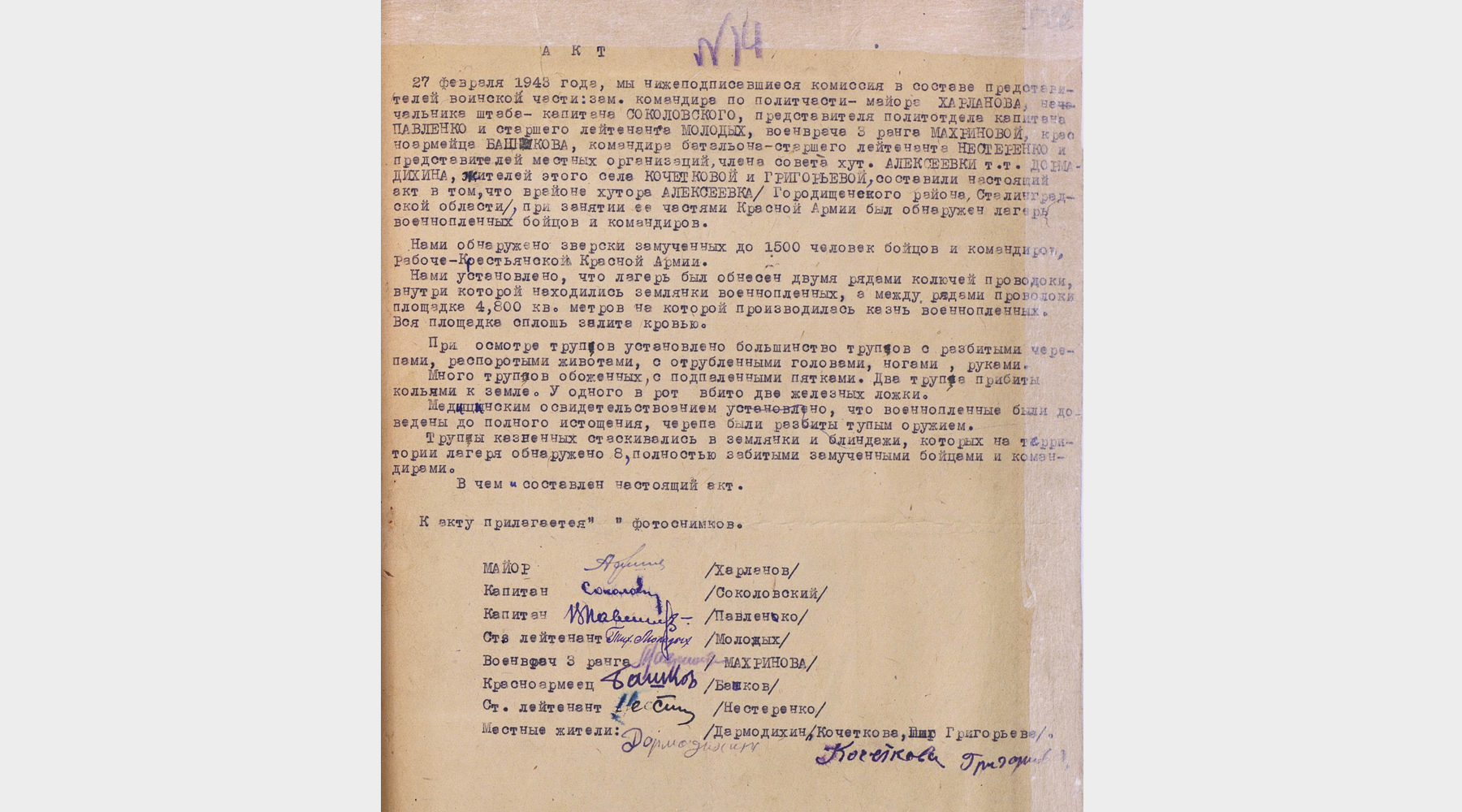 Акт о зверствах в лагере военнопленных в деревне Алексеевка © Министерство обороны РФ.