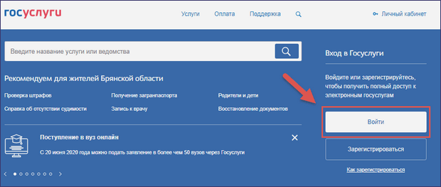 Шаг 1. Сначала нужно зайти в личный кабинет на портале.