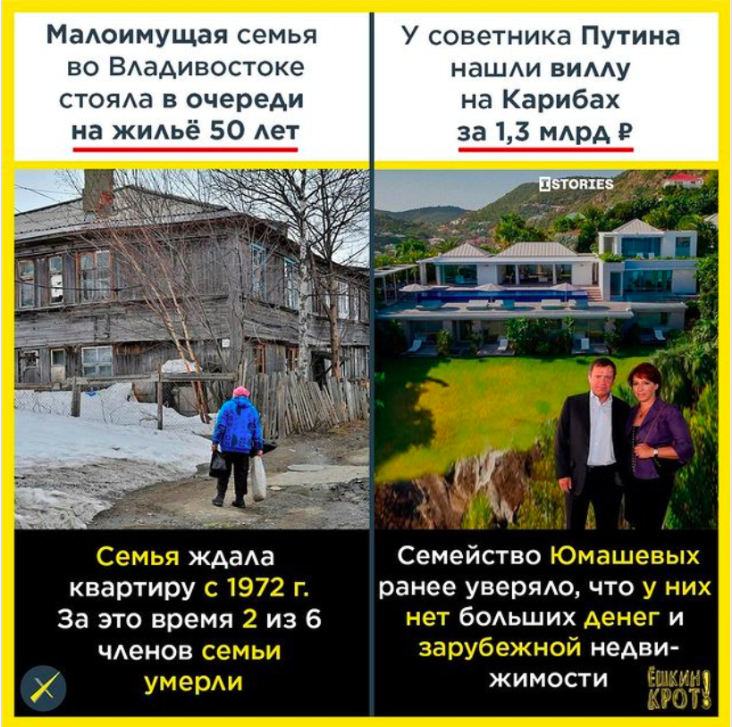 Юрий, согласен вот мой комментарий. "Использовав источник «Не важные истории», ОНО «Антицентр ТРИ-Р», оповещаю вас уважаемые читатели, что вся недвижимость приобретенная приближенными людьми Путина (советники, друзья, товарищи, знакомые, и просто коллеги), оформлена на ваше имя. Для того что бы убедиться в этом вам необходимо сделать запрос в посольства стран где бы вы хотели жить. Бред? Конечно! Прежде чем верить, читайте и смотрите видео внимательно. Где хоть какой-то документ? А то что нет опровержений…ну если меня назовут верблюдом, глупо будет если я начну опровергать. Цитата: Информация об очереди на жильё в 50 лет размещена на сайте Прокуратуры Приморского края. Вот этому верю! И это безобразие!"