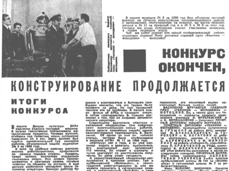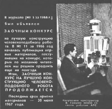 В эти самые дни советский журнал «Техника молодежи» объявляет конкурс среди своих читателей на создание лучшего человекоподобного робота!
