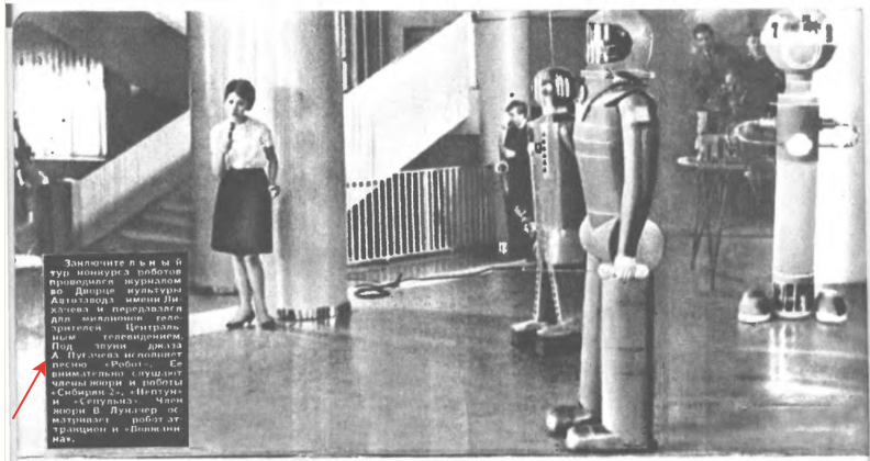 Финал конкурса роботов 1967 года проходил в фойе ДК завода ЗИЛ, при широком скоплении публики снималась передача для телевидения, и даже пригласили начинающую певицу спеть песню «Робот, мой милый робот».