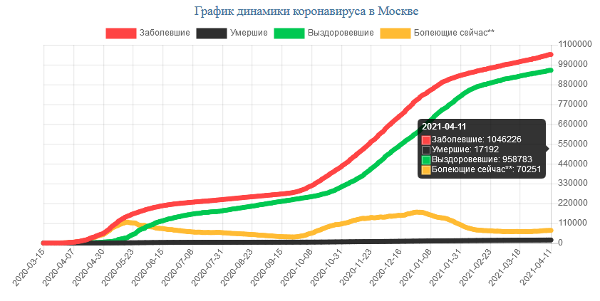 На сегодня, 11.04.2021, в Москве всего зарегистрировано: