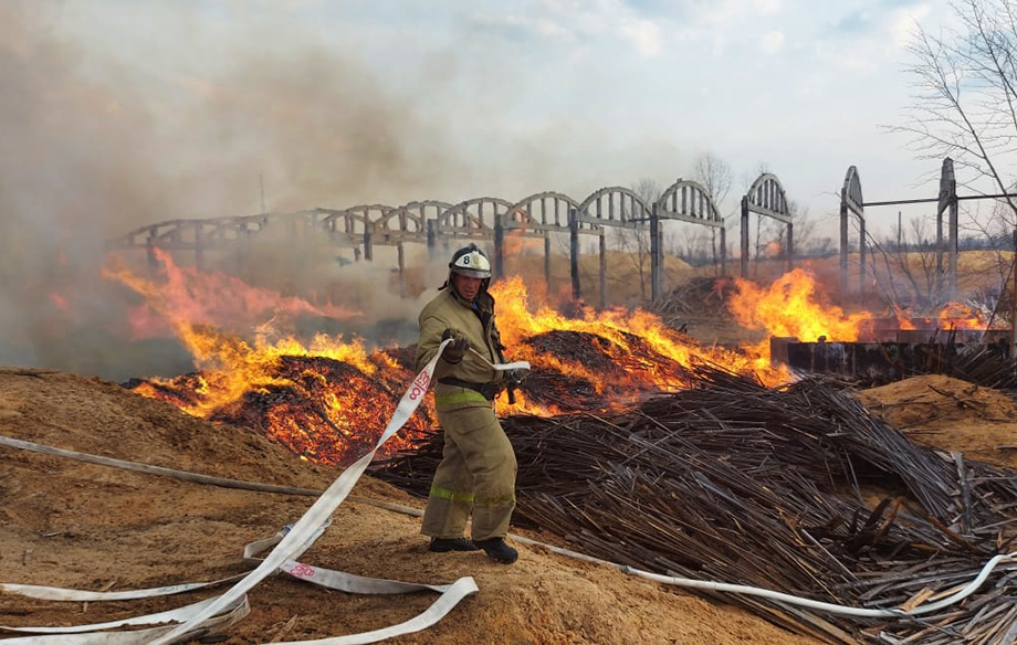Крупный пожар произошел на складе отходов от деревообработки в Биробиджане