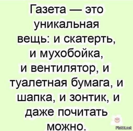 Использовали её для разжигание печей в селах, летом от солнца ☀ заклеивали окна, что-то завернуть, когда не было пакетов, конечно же еще читали, да и сейчас многие читают...