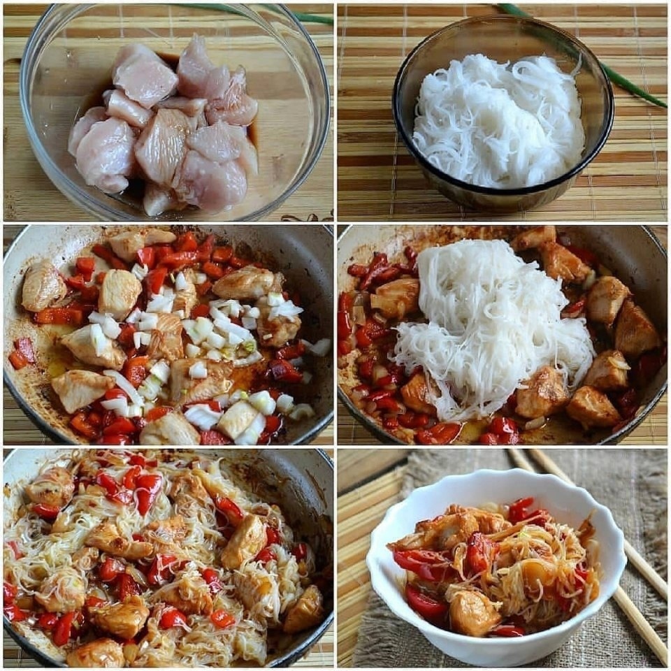 Рисовая лапша с курицей готова. Подавайте её горячей в небольших пиалах.