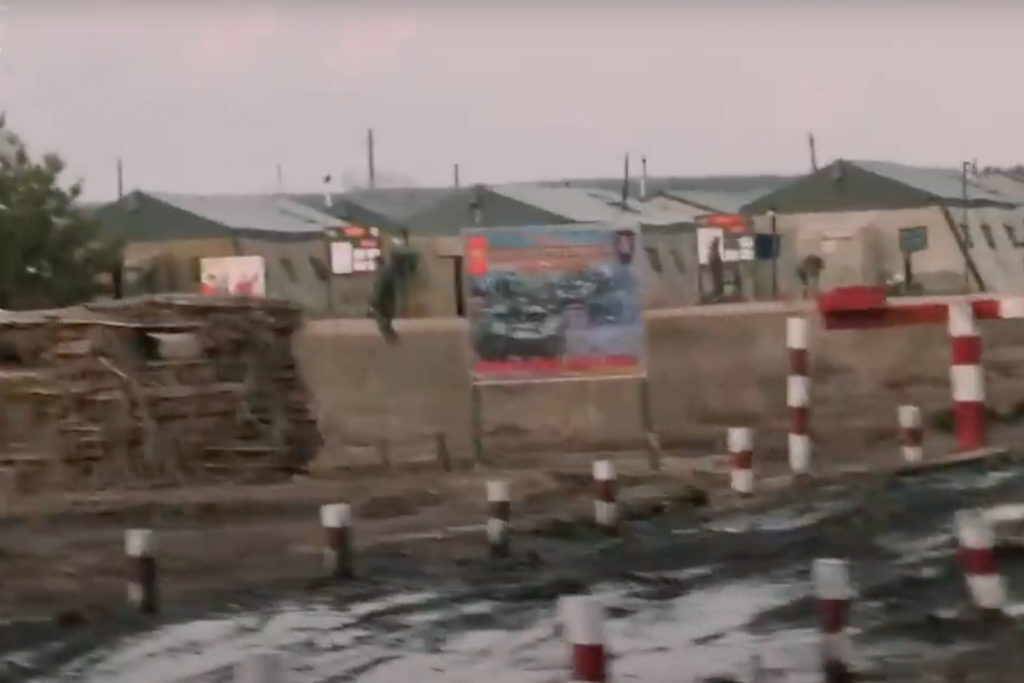 Журналисты засняли камуфляжные палатки, военный грузовик и предполагаемых военных. На входе висит знак «Тяжело в учении легко в бою». Один из солдат, опознавший в журналистах иностранцев, сказал им: «Привет, шпионы».
