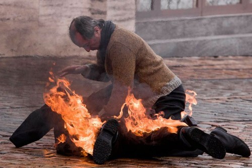 В пятницу он из принесенной с собой бутылки с горючей жидкостью облил себя и поджог.